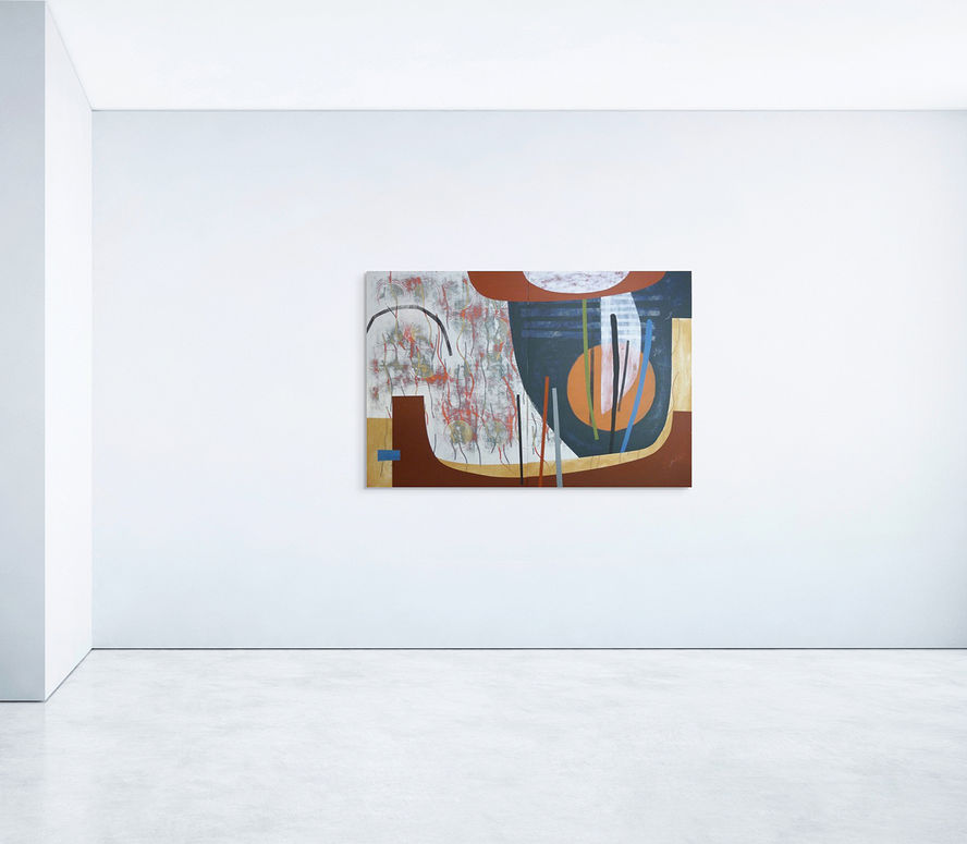 FOUND, 2020. Acrylic and mixed media on wood, 48 x 60 x 1.8 in.
